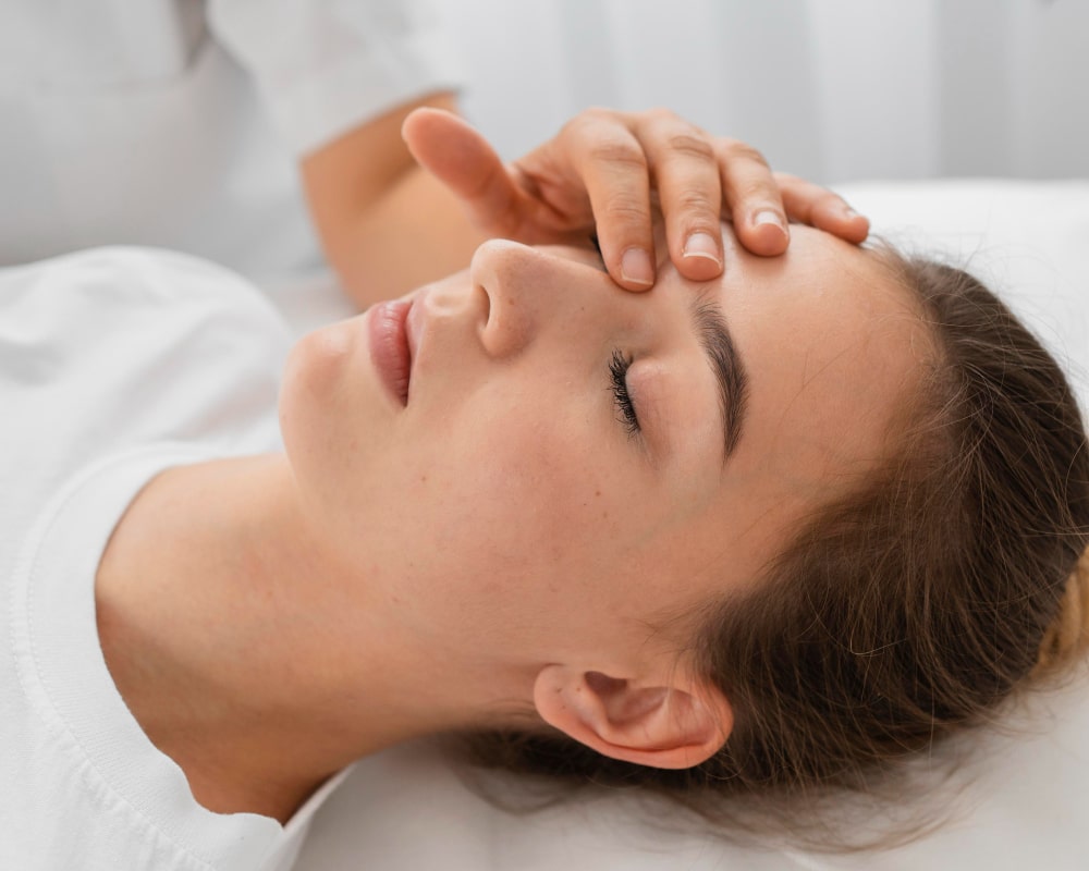 Перед початком тренування сядьте прямо, розслабте спину та зробіть кілька кругових рухів головою. Можна також вдатися до технік глибокого дихання, щоб покращити ефект. Контролюйте міміку та уникайте напруження. Обережно розтягуйте м’язи перенісся, брів і чола двома пальцями. Уявіть, що ви замішуєте тісто — можна також робити невеликі кругові рухи. Можете також скористатися масажним роликом. Після закінчення процедури посидіть 5 хвилин із заплющеними очима.Використання косметичних засобів і патчів